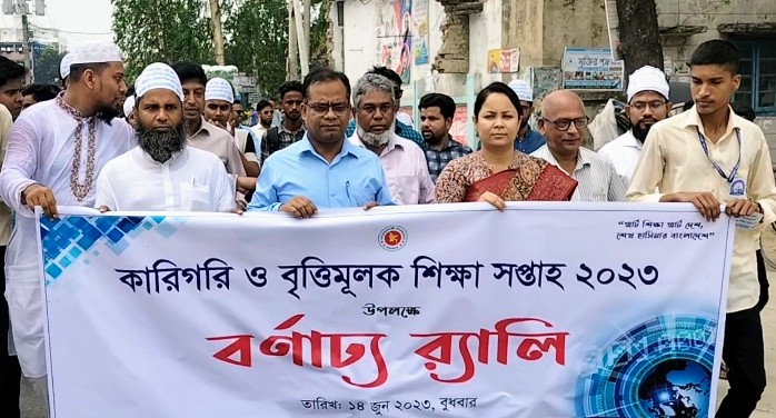 শোভাযাত্রায় অংশ নেয় বিভিন্ন কারিগরি শিক্ষা প্রতিষ্ঠানের শিক্ষক ও শিক্ষার্থীরা।