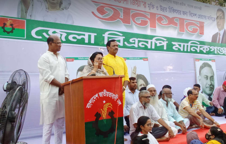 বিএনপির চেয়ারপার্সন বেগম খালেদা জিয়ার মুক্তি ও উন্নত চিকিৎসার জন্য বিদেশ প্রেরণের দাবীতে মানিকগঞ্জ জেলা বিএনপি অনশন কর্মসূচী পালন করেছে।