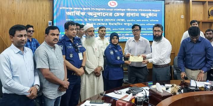 জুলাই-আগস্ট গণঅভ্যুত্থানে মানিকগঞ্জের পাঁচ শহীদের পরিবারের মাঝে আর্থিক অনুদানের চেক দেওয়া হয়েছে।