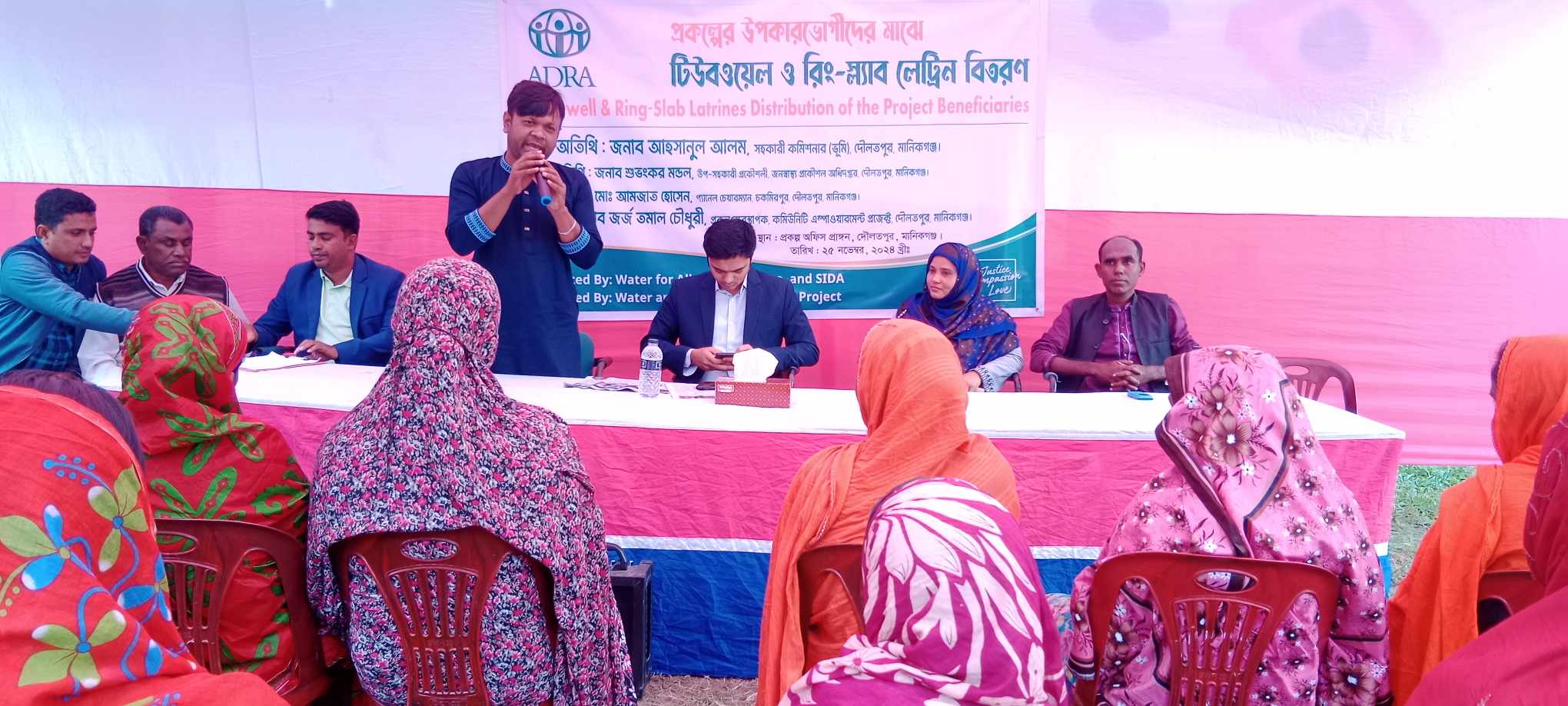 সুপেয় ও নিরাপদ পানির ব্যবস্থা করতে উপকারভোগী সদস্যদের মাঝে ২৪ সেট টিউবওয়ে সহ বেইজমেন্টের মালামাল ও ৭৫ সেট রিং স্ল্যাব লেট্রিন বিতরণ করেছে এড্রা বাংলাদেশ।