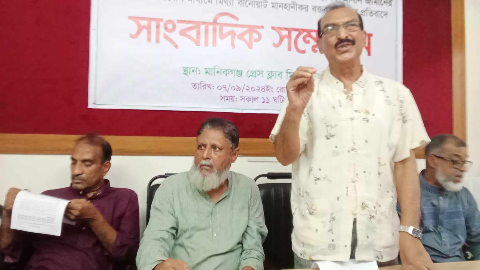 সংবাদ সম্মেলনে লিখিত বক্তব্য পাঠ করেন সিংগাইর উপজেলা বিএনপি’র সাধারণ সম্পাদক দেওয়ান মাহবুবুর রহমান মিঠু।