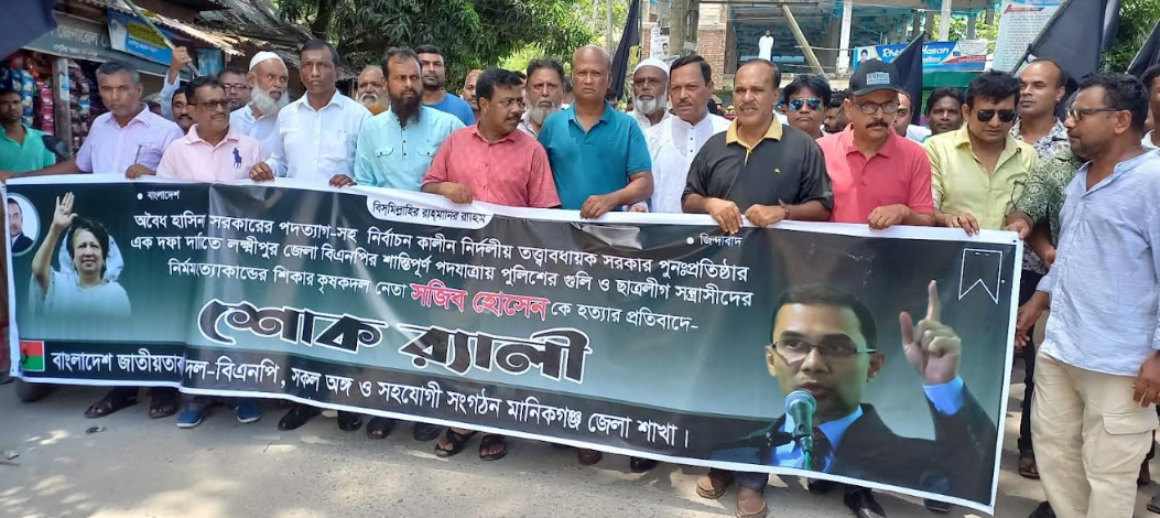 লক্ষ্মীপুরে জেলা বিএনপির শান্তিপূর্ণ পদযাত্রায় পুলিশের গুলি ও ছাত্রলীগ সন্ত্রাসীদের নির্মম হত্যাকাণ্ডের শিকার কৃষকদল নেতা সজিব হোসেন হত্যার প্রতিবাদে শোক র্যালি ও সমাবেশ মানিকগঞ্জ জেলা বিএনপি ও অঙ্গ সংগঠনের নেতা কর্মীরা।