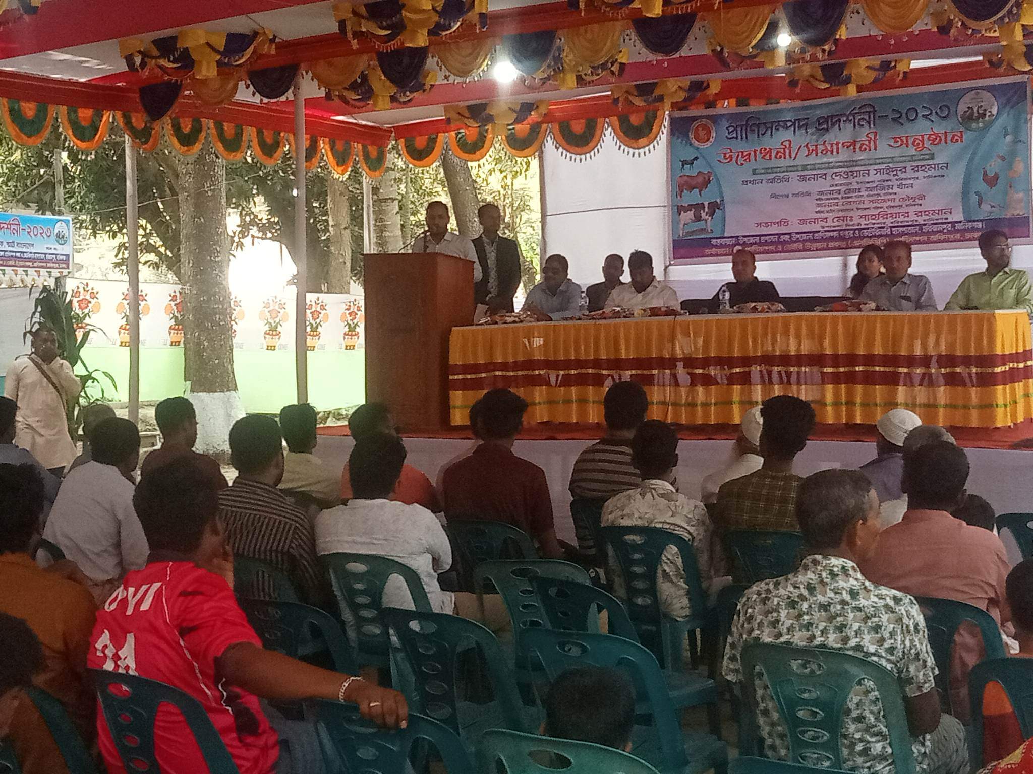মানিকগঞ্জের হরিরামপুরে প্রাণিসম্পদ প্রদর্শনী অনুষ্ঠিত হয়েছে। ২৫ ফেব্রুয়ারি (শনিবার) সকাল হতে প্রাণি সম্পদ সেবা সপ্তাহ উপলক্ষে উপজেলা প্রাণিসম্পদ কার্যালয় চত্বরে এ প্রদর্শনী অনুষ্ঠিত হয়। প্রাণিসম্পদ অধিদপ্তর, মৎস্য ও প্রাণিসম্পদ মন্ত্রণালয়েল অধীনস্থ প্রাণিসম্পদ ও ডেইরী উন্নয়ন প্রকল্পের (এলডিডিপি) সহযোগীতায় প্রদর্শনীর আয়োজন করে হরিরামপুর উপজেলা প্রাণিসম্পদ দপ্তর ও ভেটেরিনারী হাসপাতাল। অনুষ্ঠনে উপজেলা নির্বাহী কর্মকর্তা মো. শাহরিয়ার রহমান এঁর সভাপতিত্বে প্রধান অতিথি হিসেবে উপস্থিত ছিলেন উপজেলা পরিষদের চেয়ারম্যান দেওয়ান সাইদুর রহমান। অনুষ্ঠানে স্বাগত বক্তব্য রাখেন উপজেলা প্রাণিসম্পদ কর্মকর্তা ডাঃ মো. জহুরুল ইসলাম। প্রাণী সম্পদ অফিসের এলএফএ মনোরঞ্জন হালদার মাধবের সঞ্চালনায় আরও উপস্থিত ছিলেন উপজেলা মহিলা ভাইস চেয়ারম্যান বেগম সাজেদা চৌধুরী, মৎস্য কর্মকর্তা সাইফুর রহমান, প্রকল্প বাস্তবায়ন কর্মকর্তা মো. মানিকুজ্জামান, উপজেলা আওয়ামী লীগের সভাপতি গোলজার হোসেন বাচ্চু প্রমুখ। প্রদর্শনীতে উপজেলার বিভিন্ন এলাকার খামারাদের ৫০টি প্রদর্শনী স্টল নিয়ে উপজেলা প্রাণিসম্পদ দপ্তর ও ভেটেরিনারী হাসপাতাল চত্ত্বরে প্রদর্শনী মেলা অনুষ্ঠিত হয়।