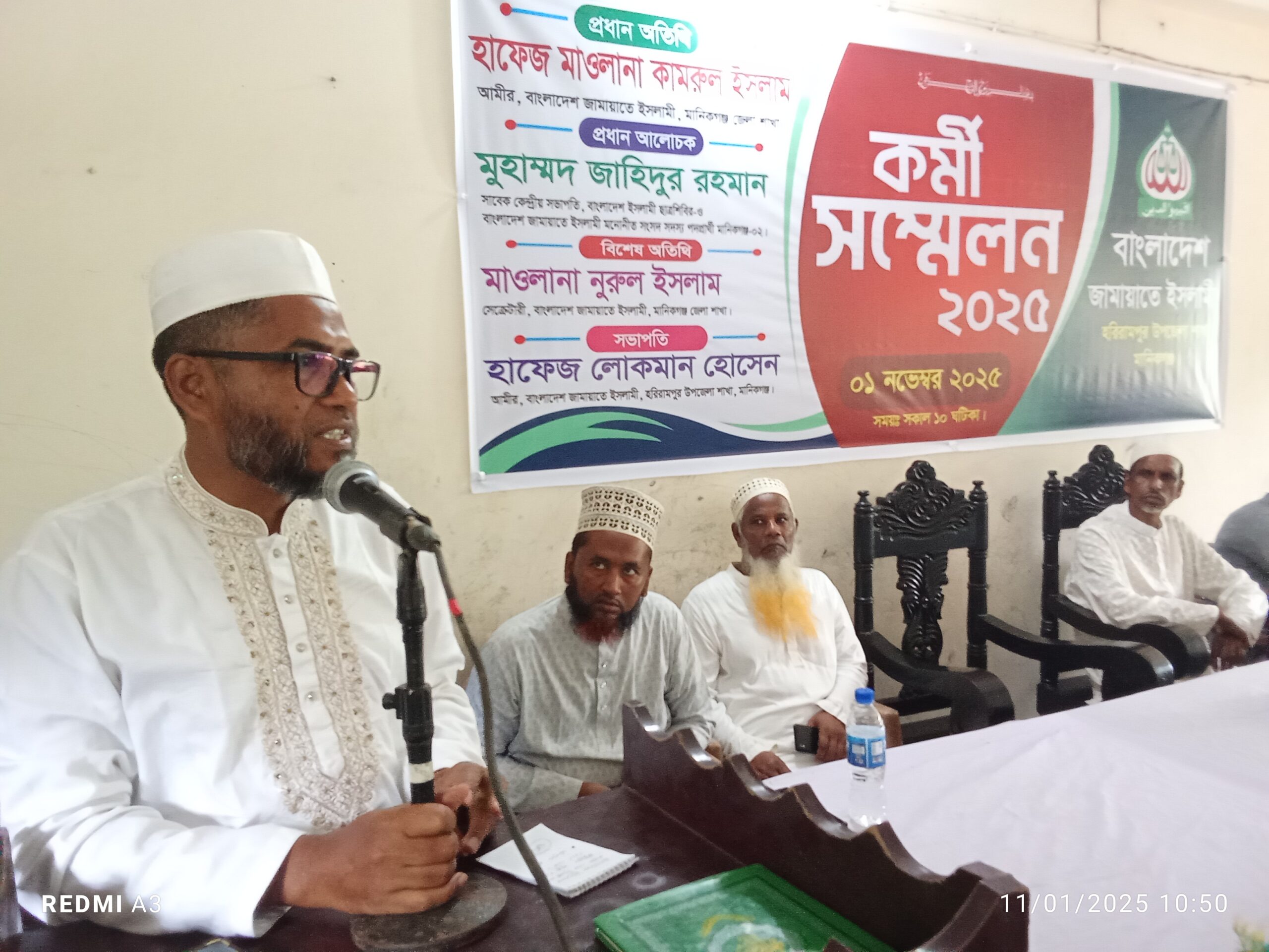 মানিকগঞ্জ জেলার হরিরামপুর উপজেলায় বাংলাদেশ জামায়াতে ইসলামী’র উদ্যোগে এক কর্মী সম্মেলন অনুষ্ঠিত হয়েছে। শুক্রবার (১ নভেম্বর) সকাল ১০টায় উপজেলার স্থানীয় মাদ্রাসা মিলনায়তনে এই সম্মেলন অনুষ্ঠিত হয়।